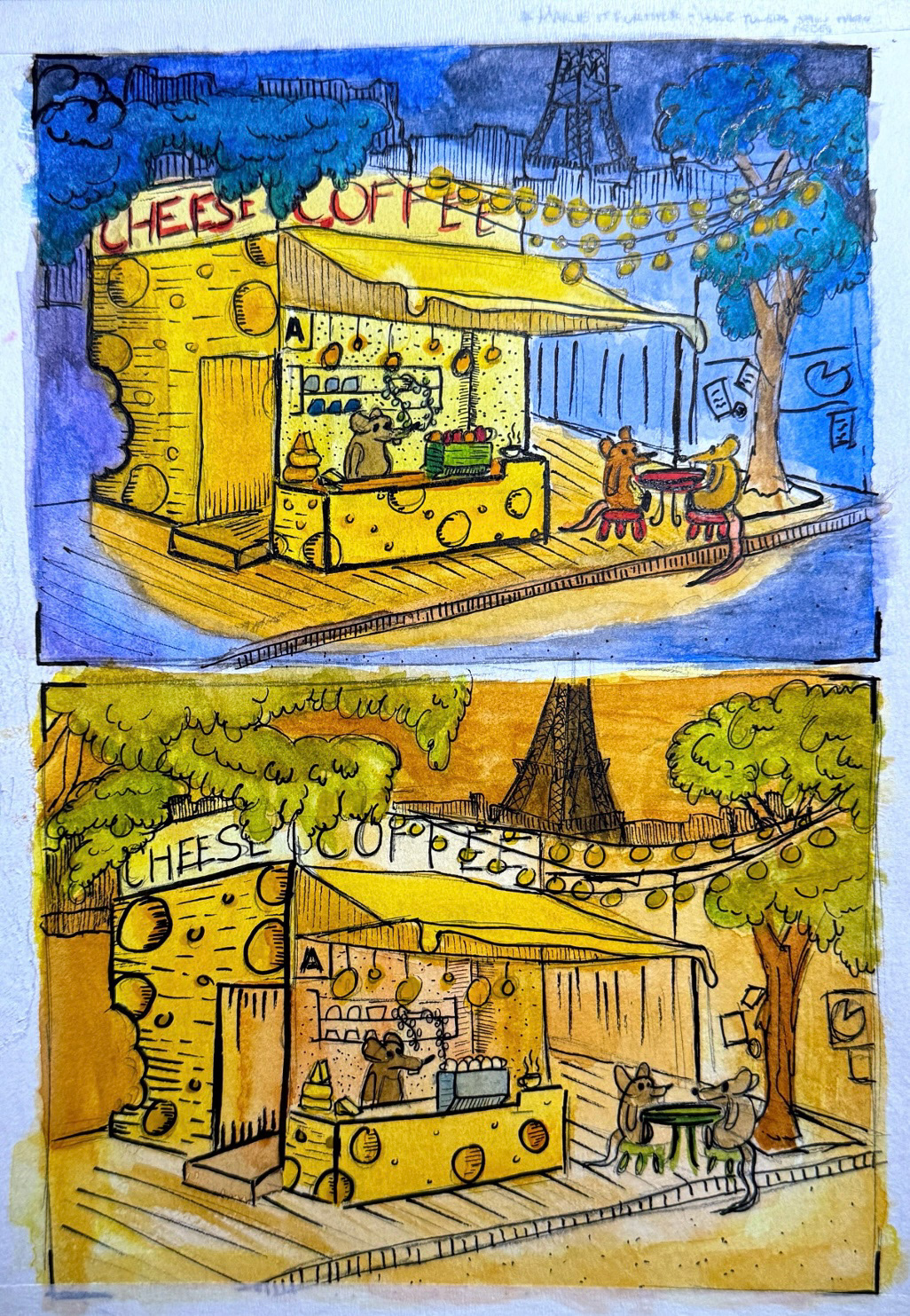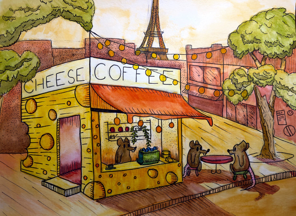 For the illustration project, we had to take a news article and do a cover for it. I took the liberty of doing rats and being found in a café. Had a lot of inspiration from Ratatouille.